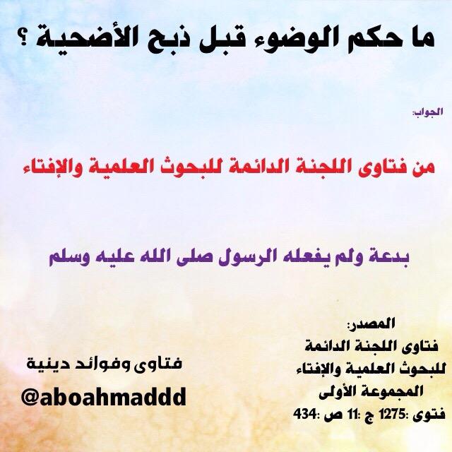 فتاوى وفوائد دينية On Twitter الوضوء قبل ذبح الأضحية بدعة لم يفعله الرسول صلى الله عليه وسلم صورة من فتاوى اللجنة الدائمة Http T Co Xdx4dvlvcw
