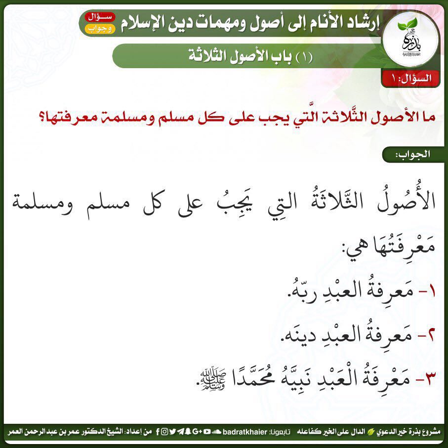 Hanan Auf Twitter كفايات اسلامي في سؤال جاء السنه الماضية الشيخ عبدالوهاب كتاب الاصول الثلاثه ماهي الاصول الثلاثه الجواب الأصول الثلاثة هي معرفة العبد ربه ودينه ونبي ه محمد صلى الله عليه وسلم