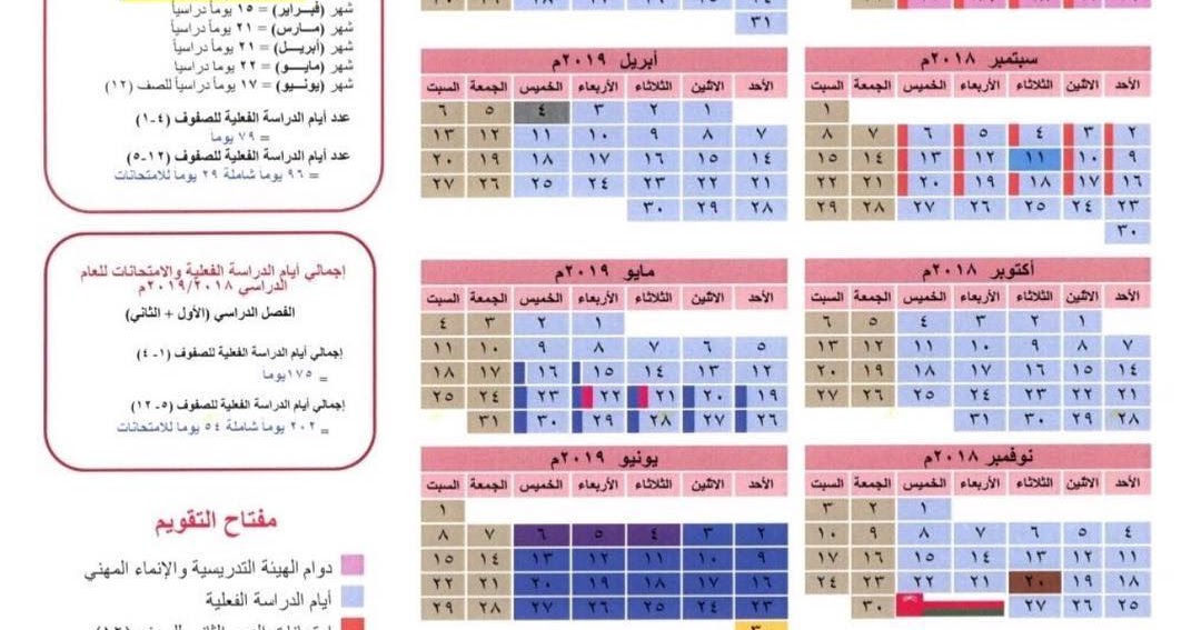 ننشر مواعيد الدراسة والإجازات للعام الدراسي 2019 2020 ع مان