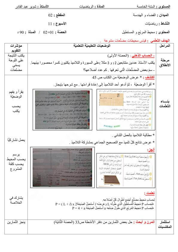 رياضيات س4 قيس محيط شكل مركب من مستطيلات و مربعات دليل المعلم
