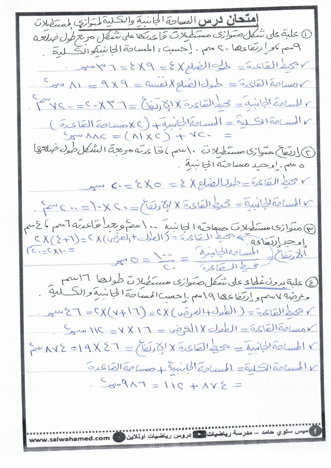 شرح وتلخيص درس مساحه سطح متوازي المستطيلات منتديات صقر الجنوب فيسبوك