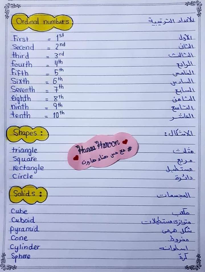 مصطلحات رياضيات بالانجليزي للمرحلة الابتدائية