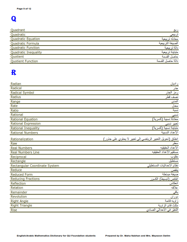 مصطلحات الماث مترجمة عربى وانجليزى لطلاب مدارس اللغات