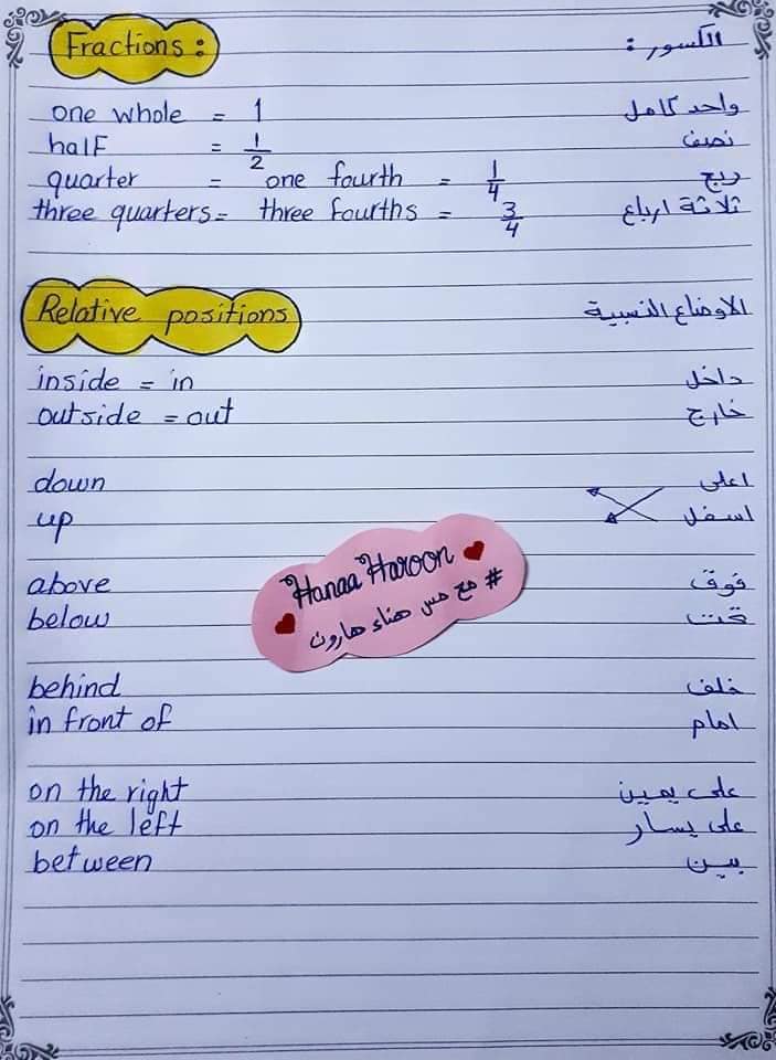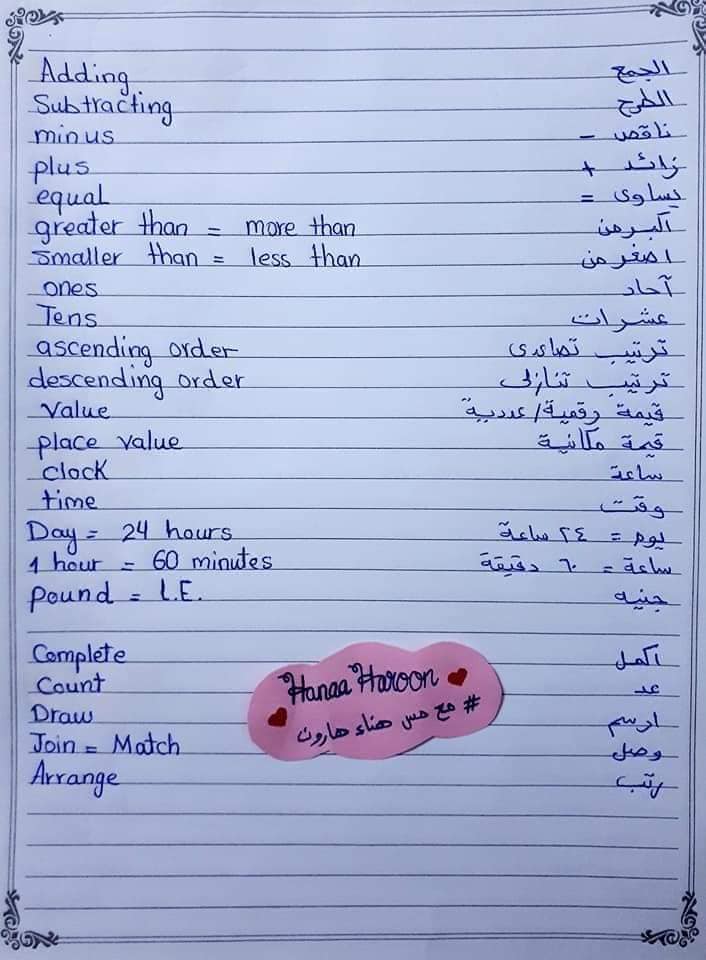 اهم المصطلحات فى الماث Math للصف الاول الابتدائى الترم الاول 2020 مس هناء هارون