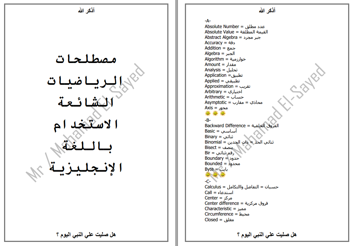 كتاب كامل لكل مصطلحات الماث Maths الشائعة فى الامتحانات والشرح لكل الفرق والمراحل ابتدائية واعدادية وثانوية