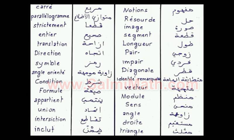 مصطلحات الرياضيات مترجمة بالفرنسية لتلاميذ المسالك الدولية Almounir