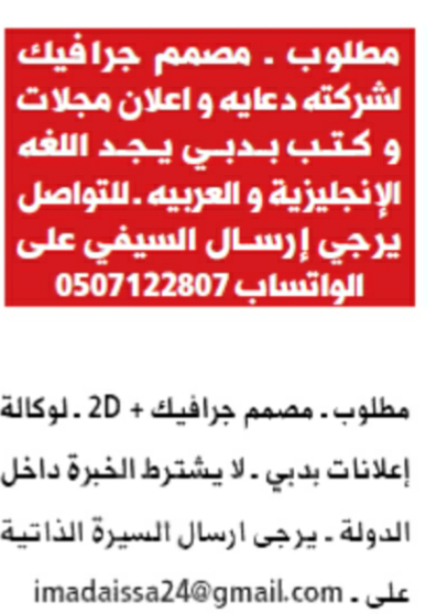 Welcome to careerdp your all in one easy to use job site that can assist you to any job search. خبرة بالمجال في نفس المجال لا تقل عن عام. مطلوب مصمم جرافيك graphic designer. Are you sure you want remove this ad from your favorites list.