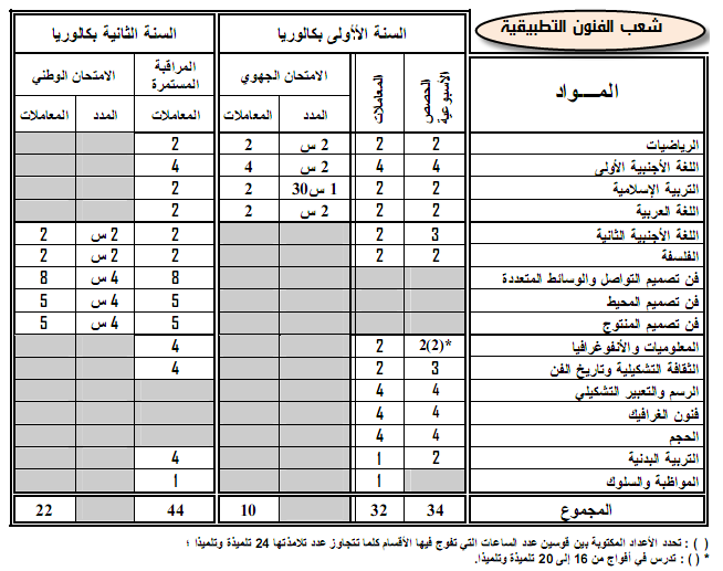 مواقيت و معاملات السنة الثالثة ثانوي تقني رياضي موقع الدراسة الجزائري
