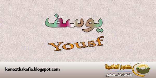 اسم عبرى معناه رجل. كما ذكرت دائرة المعارف المسيحية أنه من الأسماء العبرية ومعناها يزيد. يوسف yūsuf شخصية مهمة في الكتاب المقدس وفي القرآن إذ يربط قصة إبراهيم وإسحاق. رغم ان ابرز الميزات التي اوردها الكتاب المقدس في وصف يوسف هي ذلك الجمال الذي ربما ورثه عن امه راحيل فقد قيل عنه بانه كان حسن الصورة وحسن المظهر تك6 39 وهي نفس العبارة التي قيلت عن امه في.