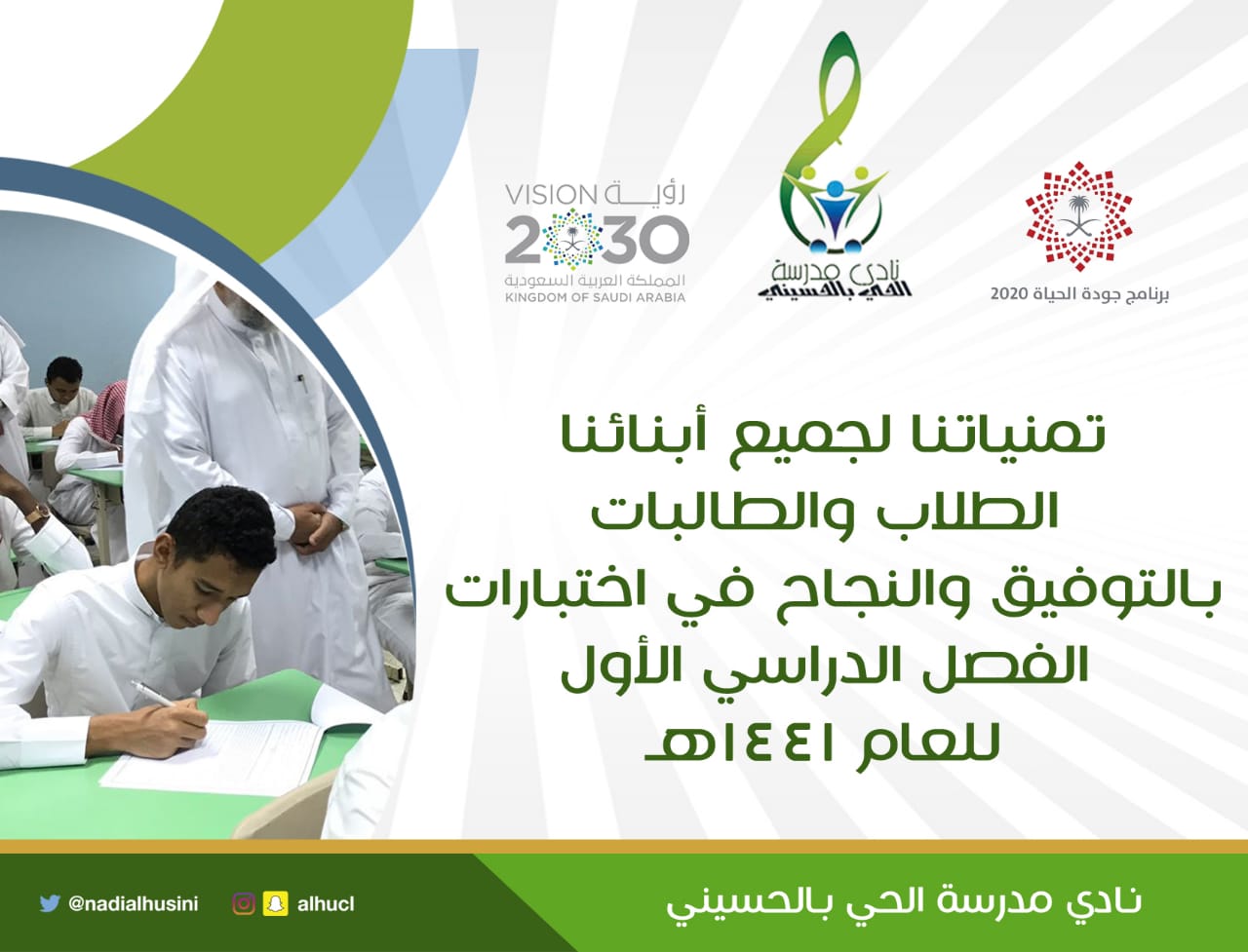نادي مدرسة الحي بالحسيني 27835 On Twitter تمنياتنا لجميع أبنائنا الطلاب بالتوفيق والنجاح Nashatsabya1 Nsclubs Sabyaedu الملف الاعلامي بوزارة التعليم انديه مدارس الحي تعليم صبيا Https T Co 22mysswzjc