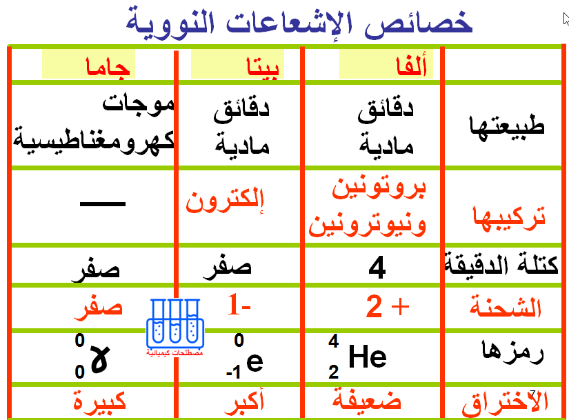 أشعة الفا بيتا قاما النشاط الاشعاعي بيوتات الكيمياء التعليمية