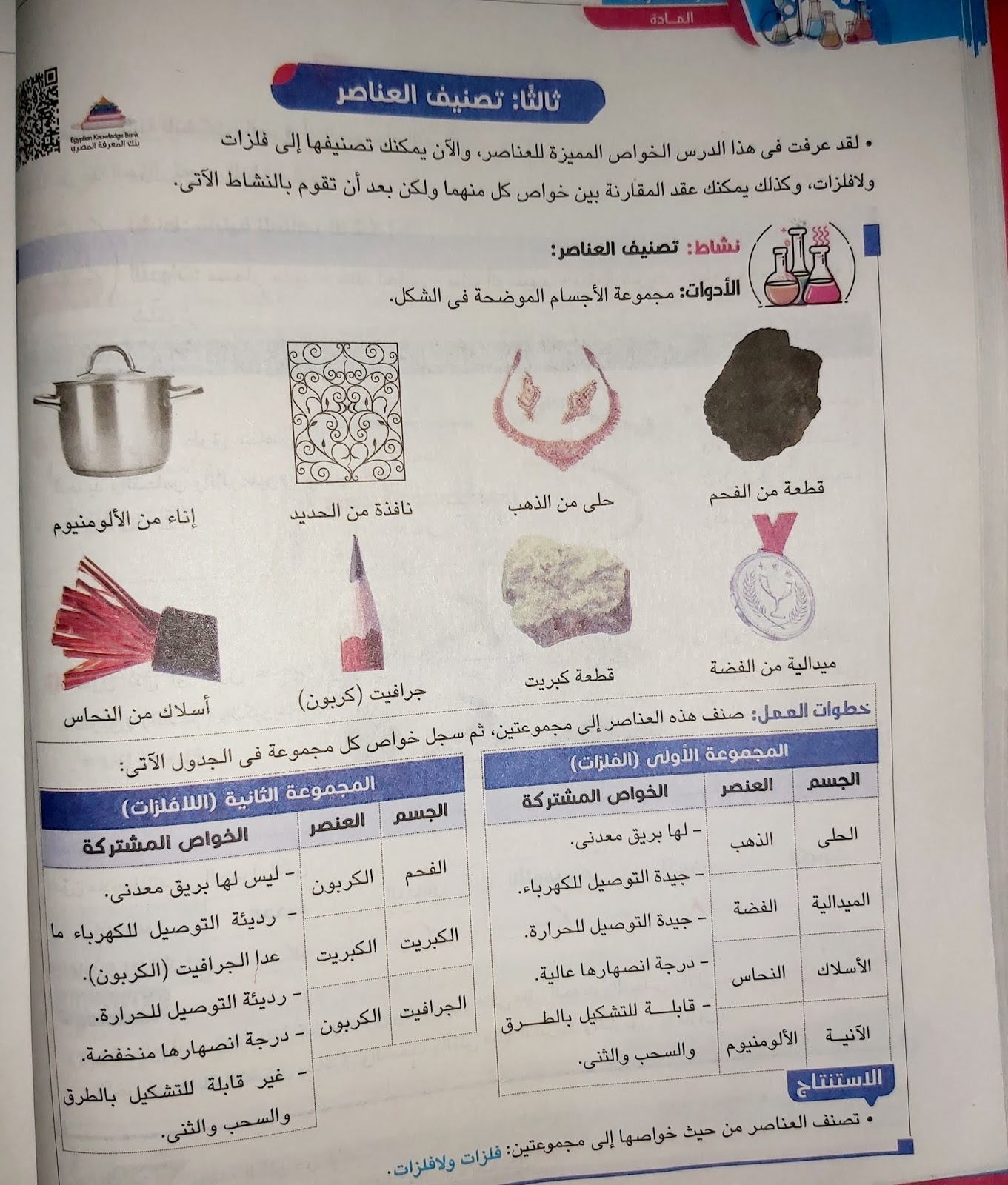 العلوم الفلزات واللافلزات للصف الرابع الابتدائي