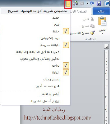 ومضات تقنية التعرف على بيئة برنامج الوورد 2010
