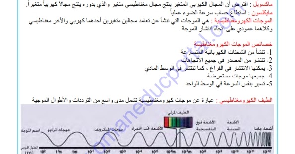 الطبيعة الموجية للضوء ملف إنجاز الكتروني لمادة الفيزياء