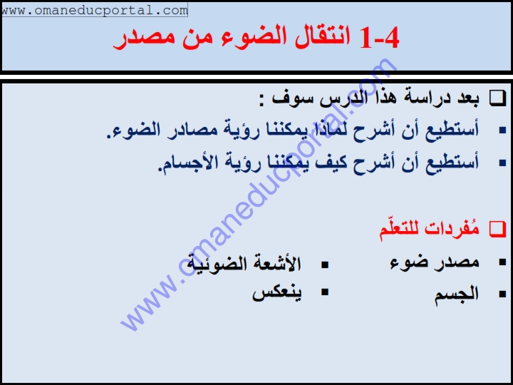 ملخص وحل انشطة درس انتقال الضوء من مصدر في العلوم للصف الخامس الفصل الثاني