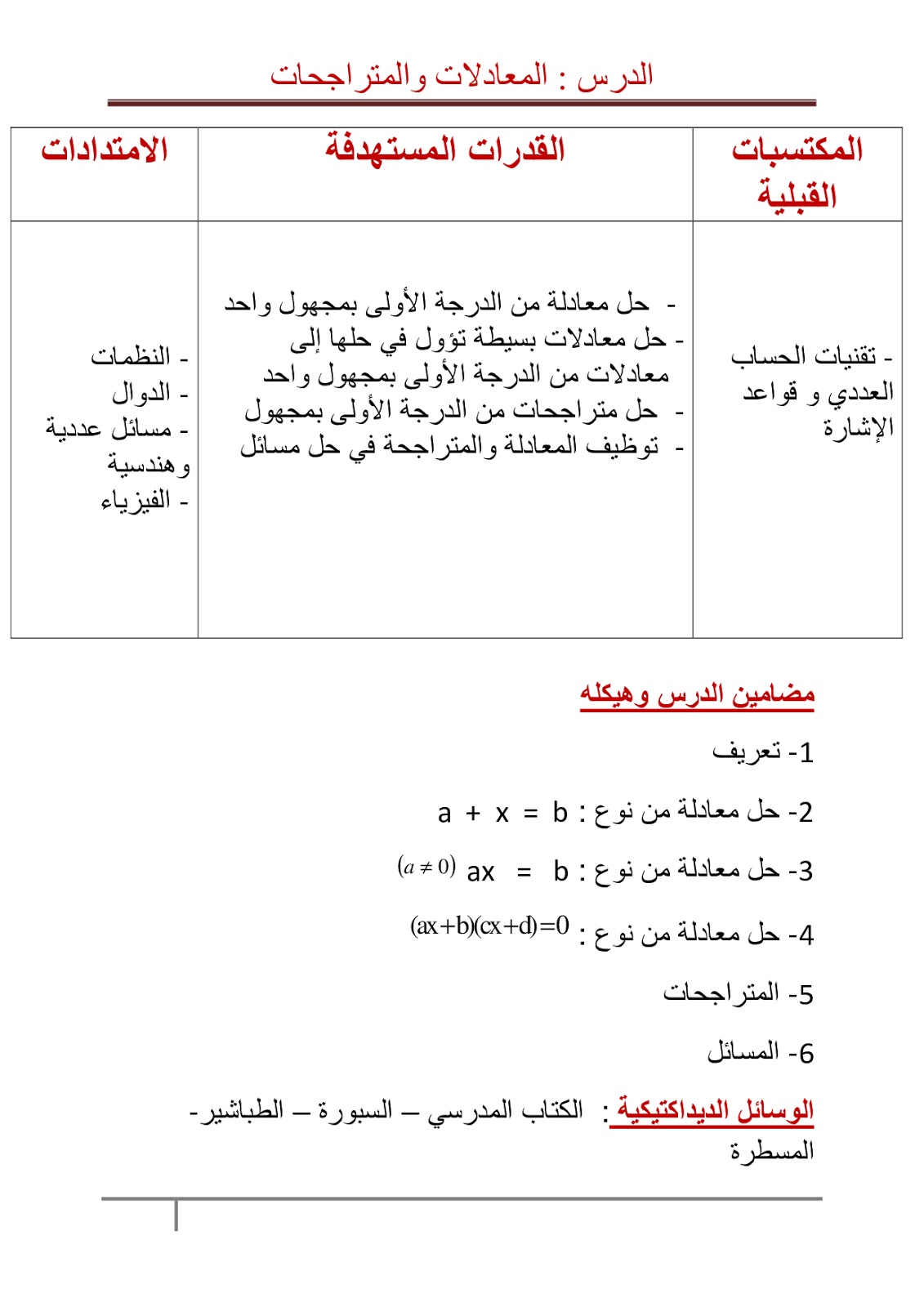 ملخص درس المعادلات والمتراجحات للسنة الثالثة إعدادي موقع الأساتذة والتلاميذ للتعليم عن بعد