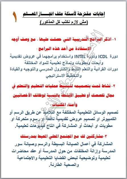 ننشر طريقة ملأ ملف انجاز المعلم للترقية واجابات الـ ١٠ اسئلة ودور كل مسئول فى التقييم للمعلم هنــا