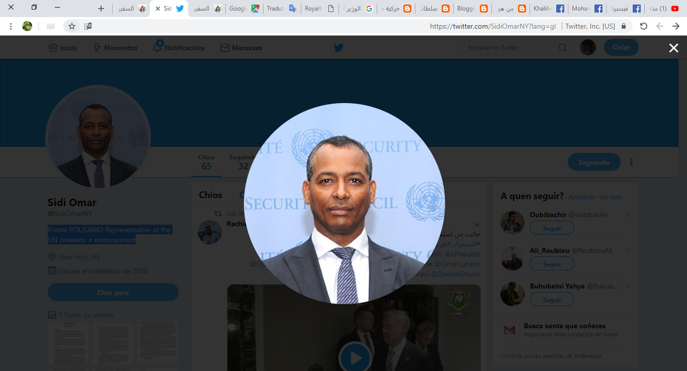 يحدث في مجلس الامن سيدي محمد عمار ممثل جبهة البوليساريو في الامم المتحدة يغرد في حسابه على تويتر موقع كل صحراوي