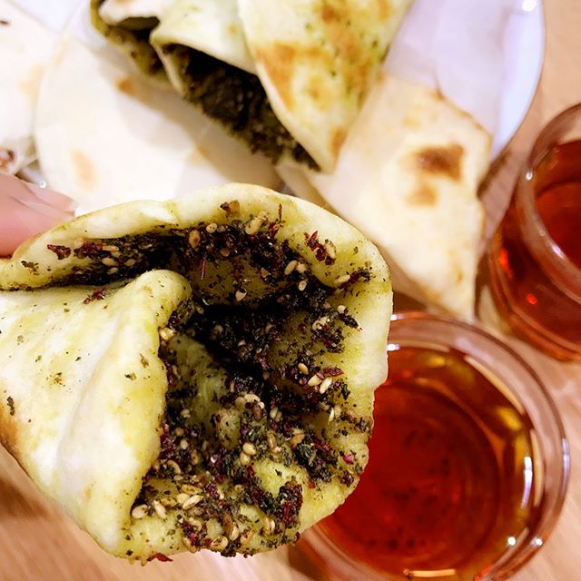 ما في أطيب من منقوشة زعتر و كاسة شاي مطعم محمرة Muhammara Facebook