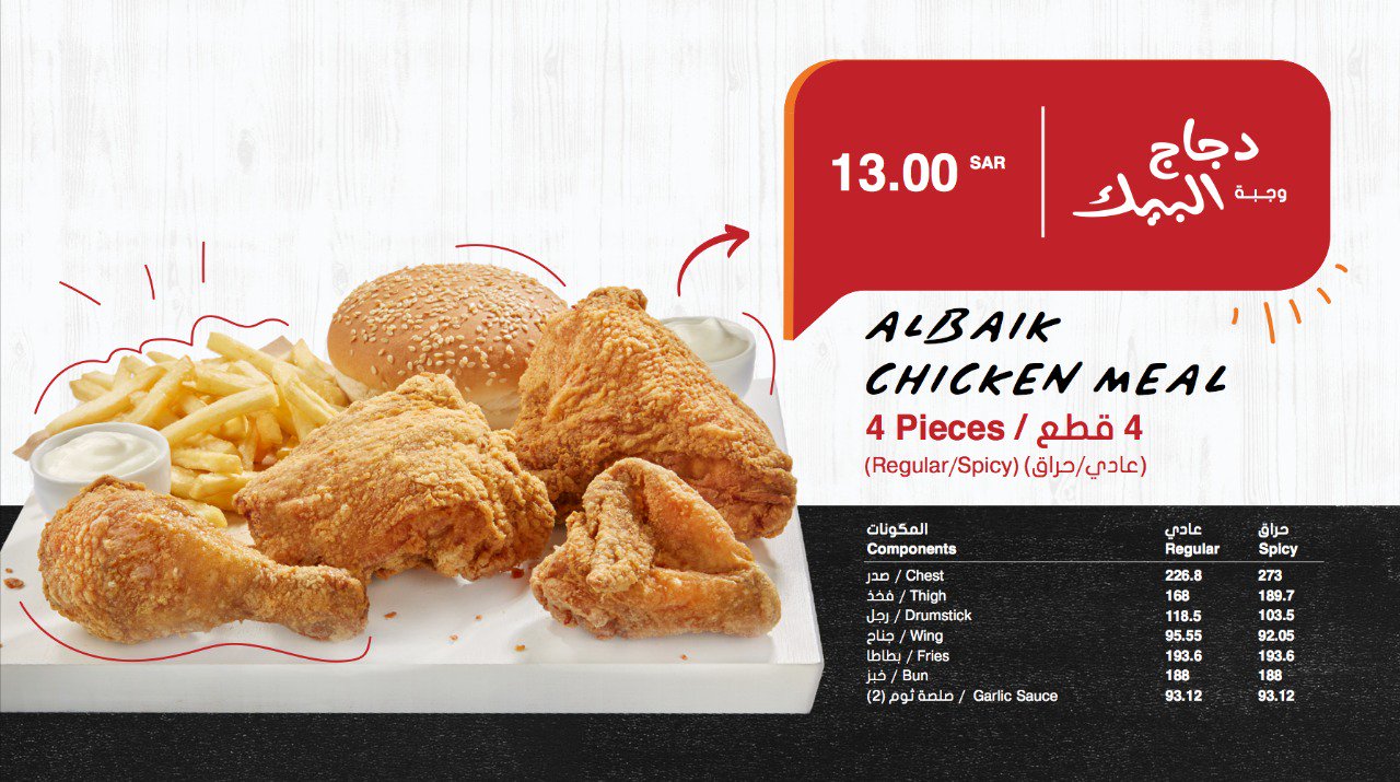 Albaik Sur Twitter ضيوفنا الكرام إبتداء من اليوم وجبة الدجاج 4 و 8 قطع بنوعيه العادي والحراق متوفره حاليا في مطعم البيك الواقع في حي طويق شارع نجم الدين الأيوبي