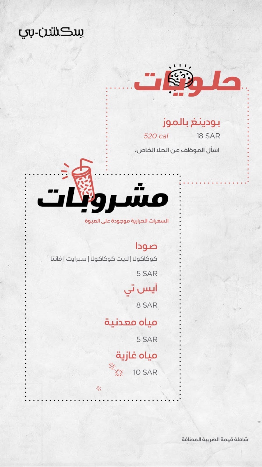 سكشن بي برجر منيو وارقام التواصل بالمطعم