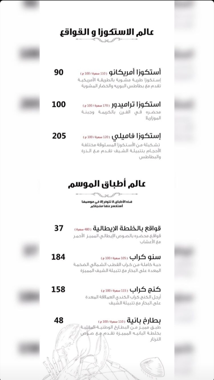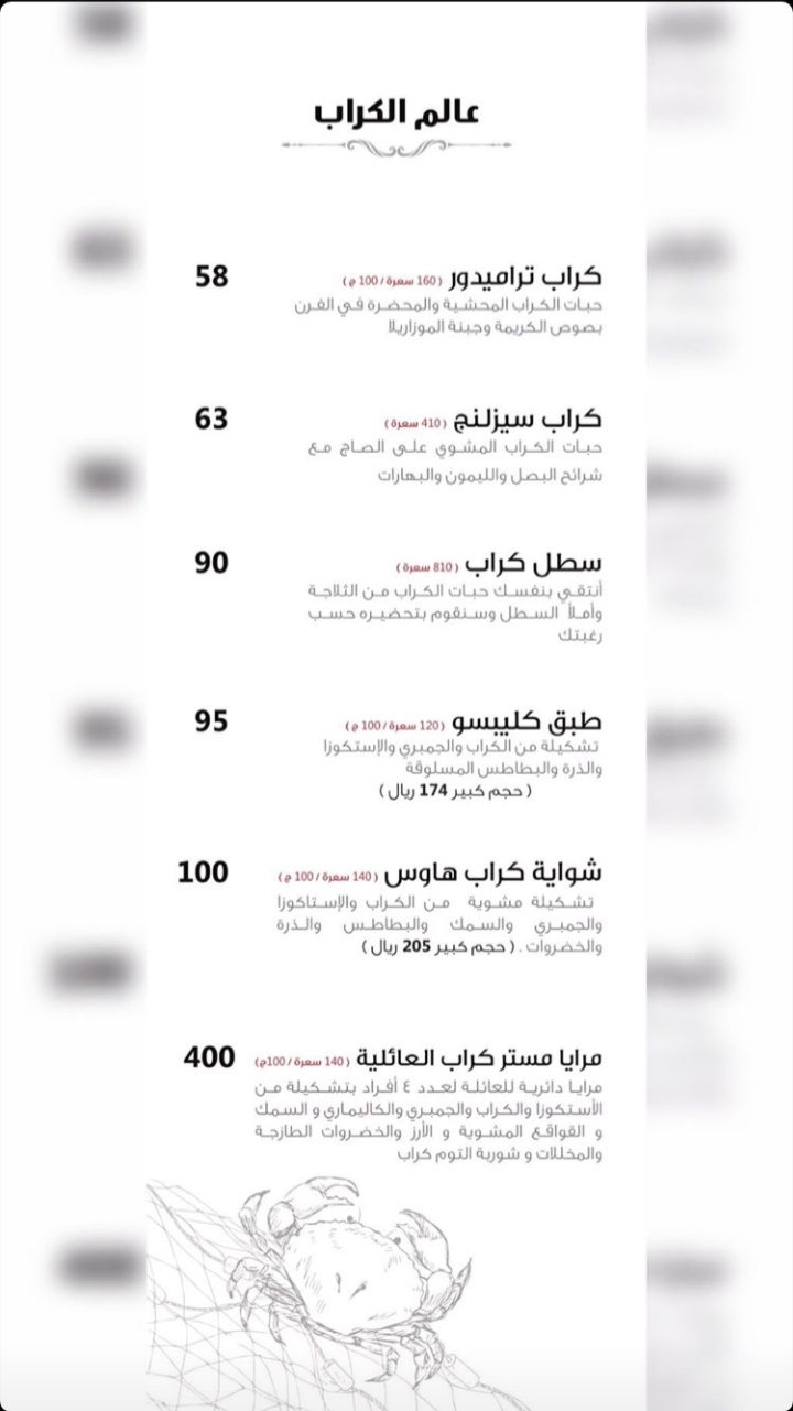 قائمة طعام منيو مطعم صيادية كراب هاوس