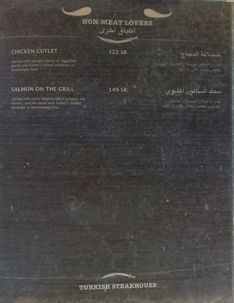 منيو سلطان ستيك هاوس الرياض