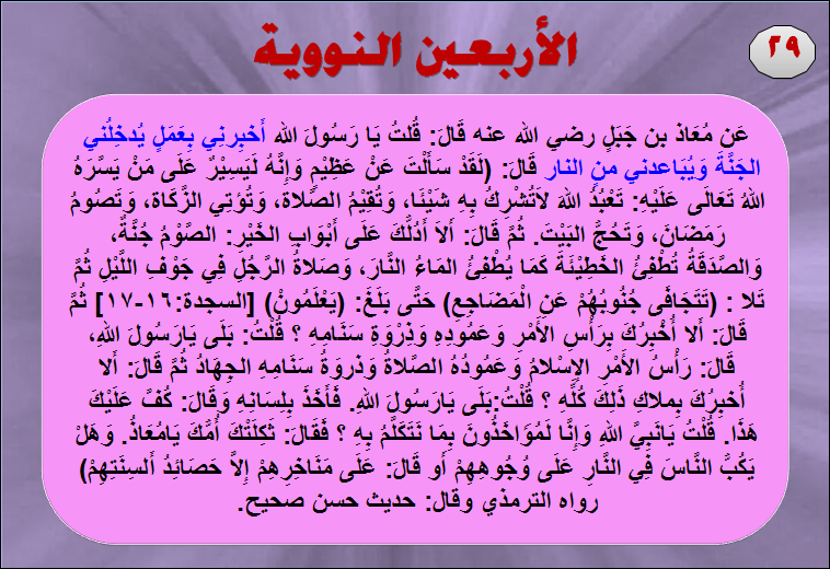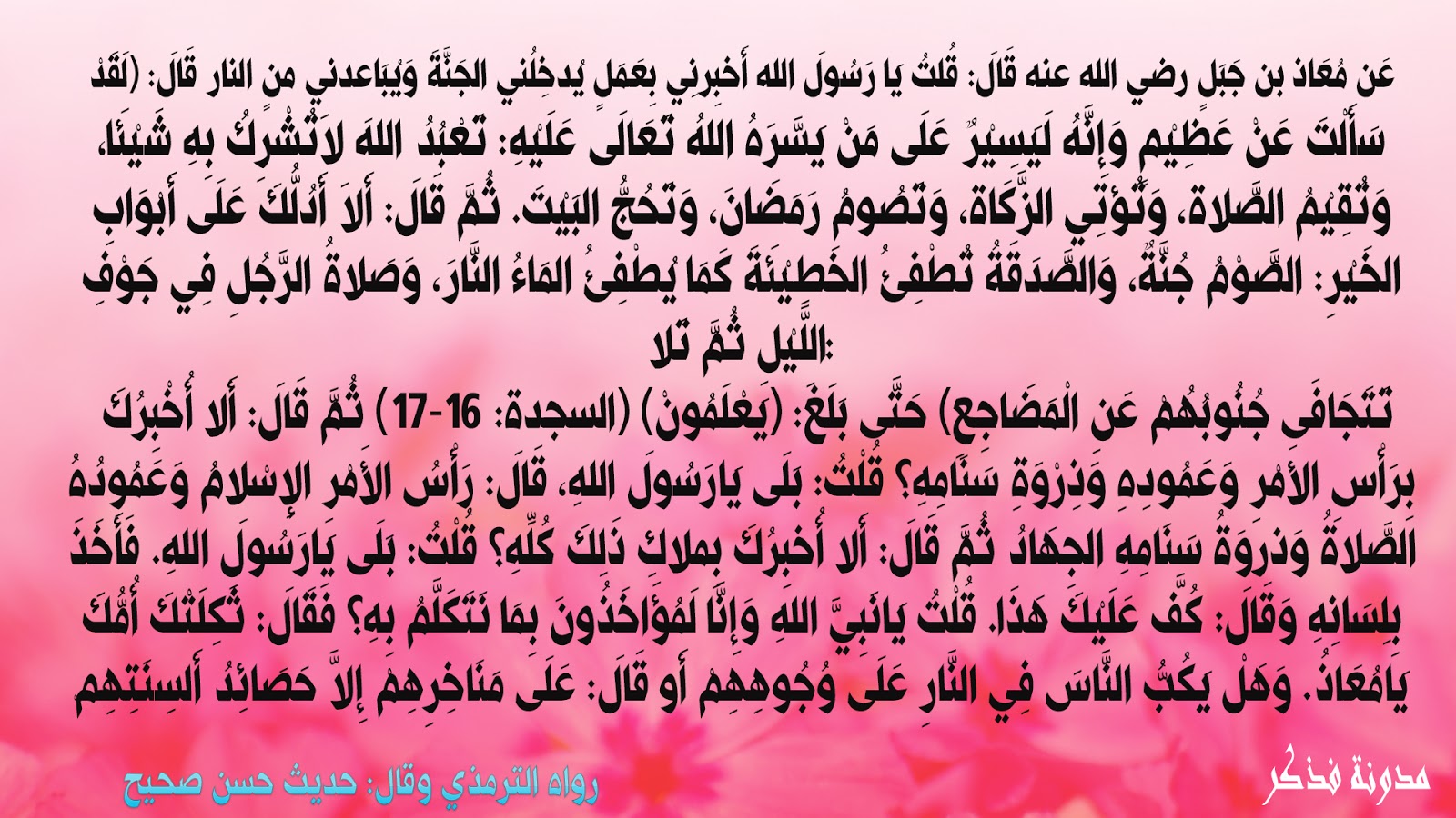 شرح الأربعين النووية حديث أخبرني بعمل يدخلني الجنه ويباعدني عن النار على خطى الحبيب
