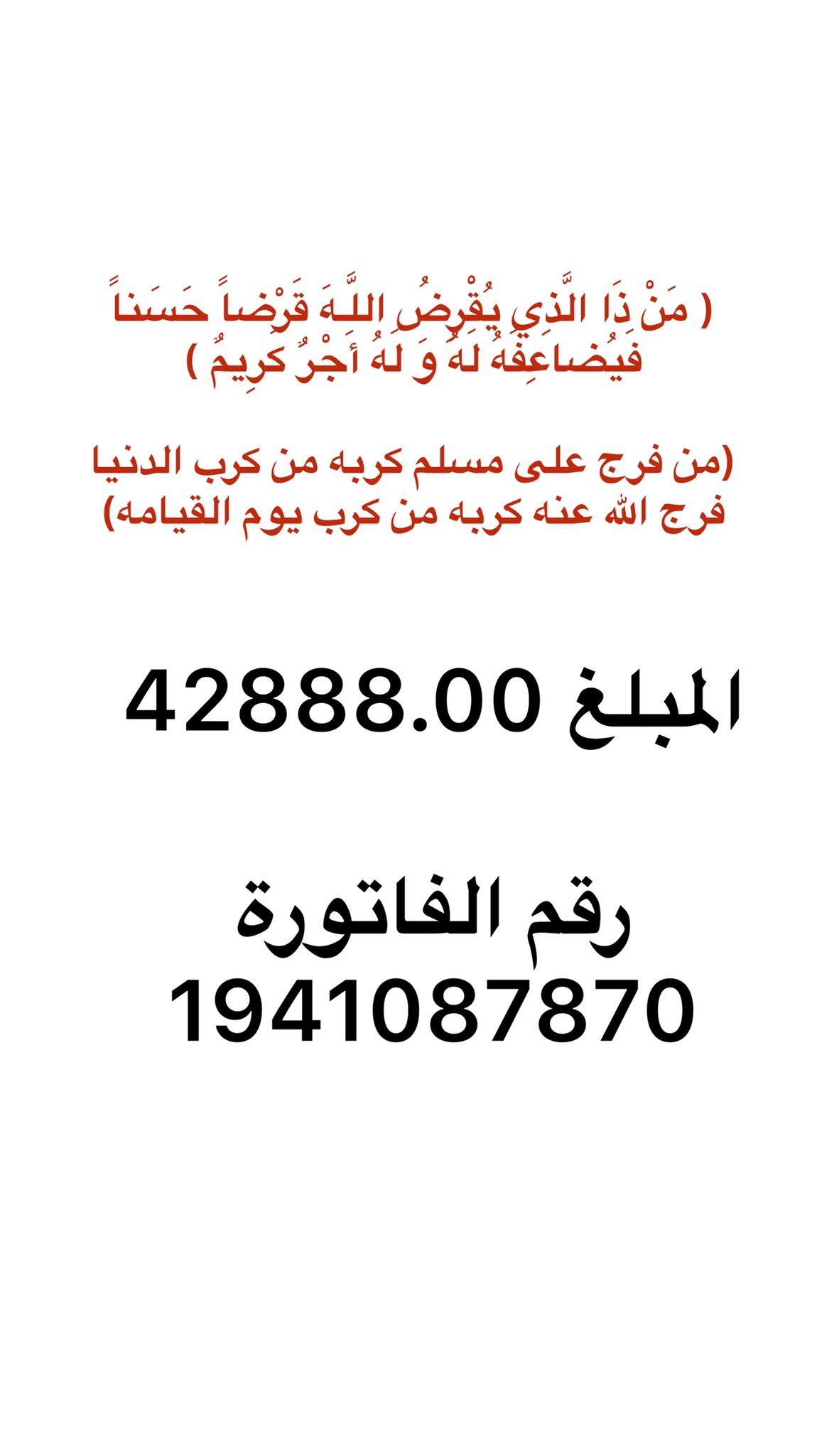 ملكةالإحســــاس والذوق A Twitter من تصدق منكم اليوم23 من فرج عن مسلم كربة فرج الله عنه كربة من كرب يوم القيامة الفاتورة 1928875458 المبلغ 40 840 Https T Co Jlwx1fxmdc