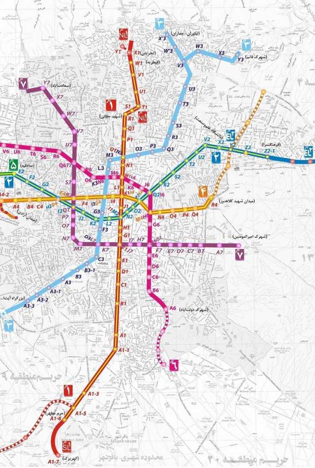 نقشه خطوط 7 گانه متروی تهران