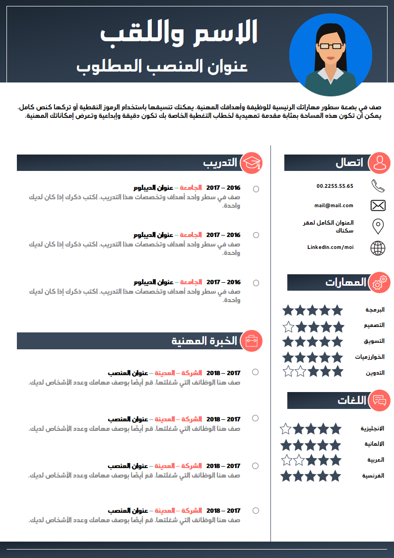 تحميل نموذج سيرة ذاتية باللغة العربية 2020