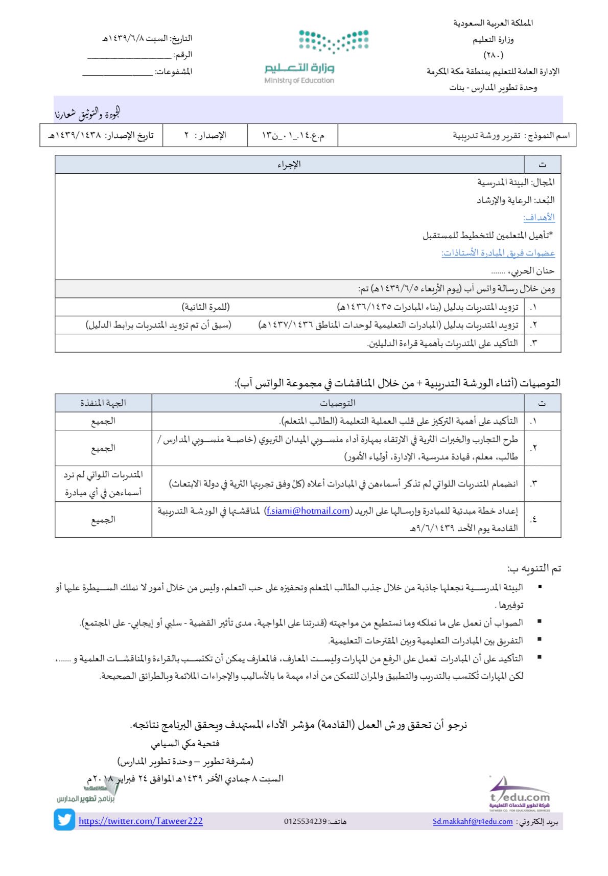 نموذج تقرير حول برنامج Shms Saudi Oer Network