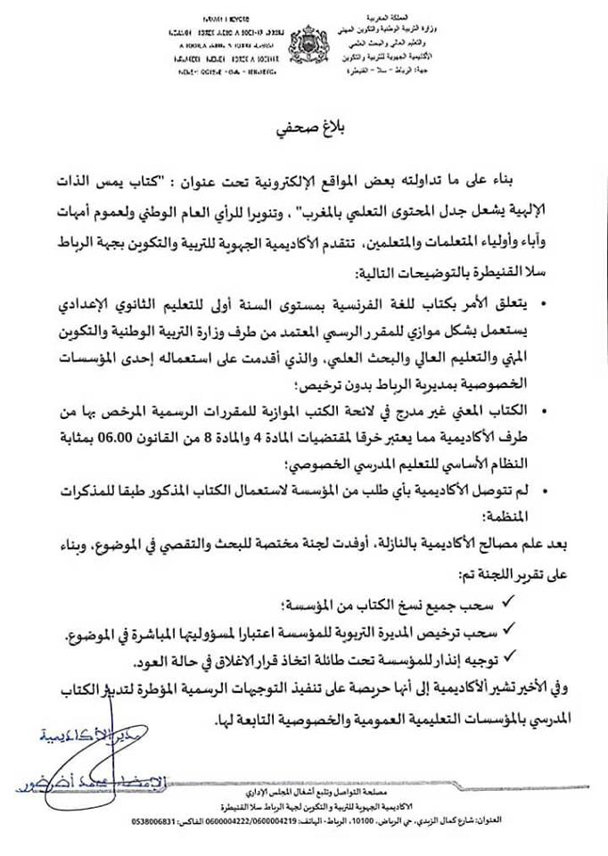 أكاديمية الرباط توضح بخصوص كتاب الفرنسية الذي مس بالذات الإلاهية زمور التربوية