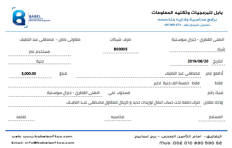 تصميم سند صرف و سند قبض مستقل