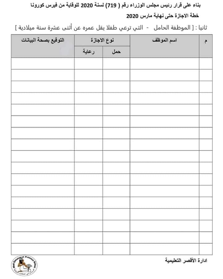 ننشر نماذج لطلبات الاجازة الاستثنائية مدفوعة الأجر لأصحاب الأمراض المزمنة والسيدات التي ترعى أطفال اقل من 12 سنة