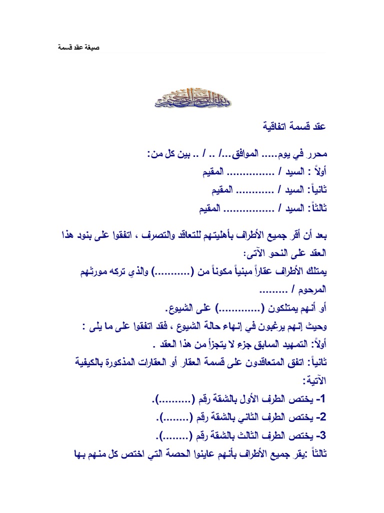 صيغة عقد قسمة