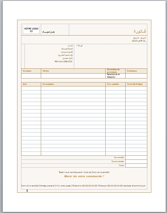 نموذج فاتورة Word