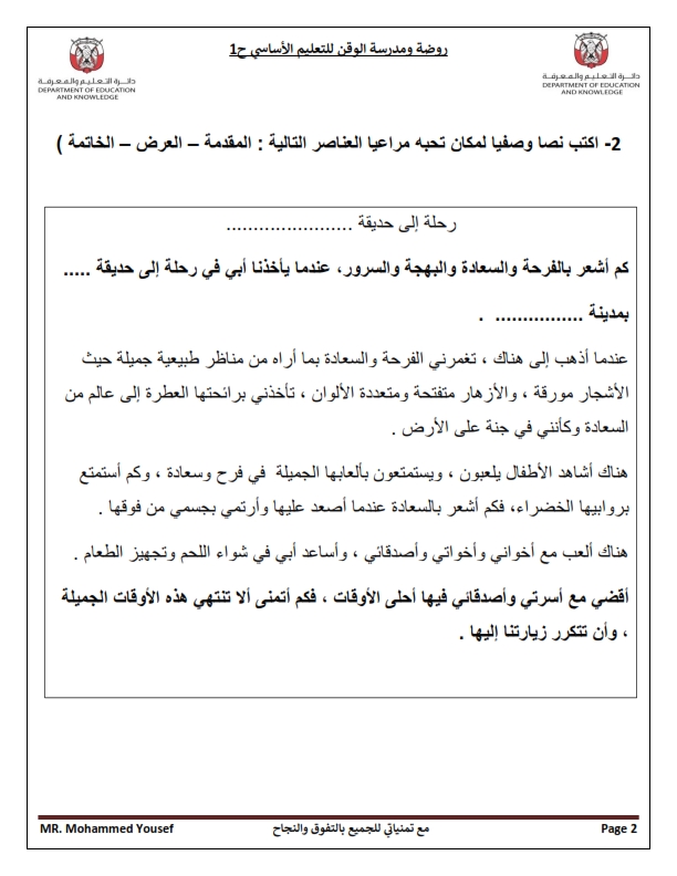 نماذج لكتابة النصوص الوصفية في اللغة العربية للصف الرابع الفصل الاول نصائح تربوية