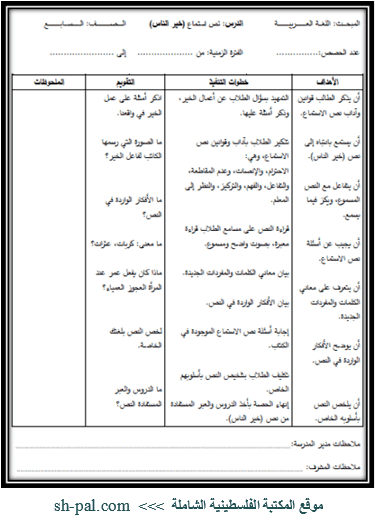 تحضير لغة عربية للصف السابع الفصل الثاني المكتبة الفلسطينية الشاملة