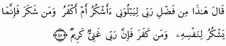 هذا من فضل ربي ليبلوني أأشكر أم أكفر