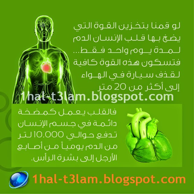 هل تعلم أن لو قمنا بتخزين القوة التي يضخ بها قلب الإنسان الدم لمدة أكمل قرأءة المعلومة