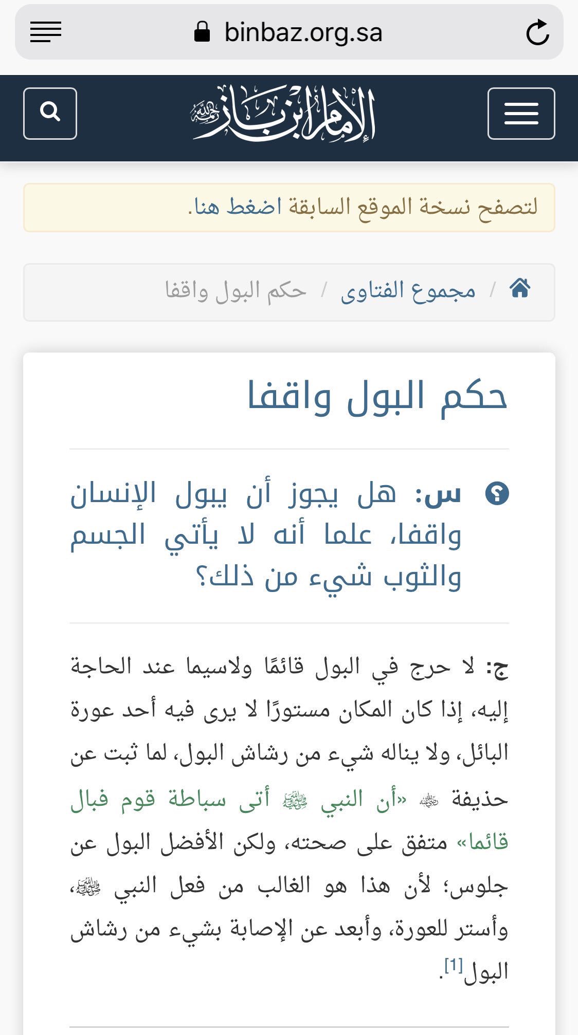 ابن باز حكم البول واقف ا س هل يجوز أن فتاوى الألباني و ابن عثيمين و ابن باز Facebook