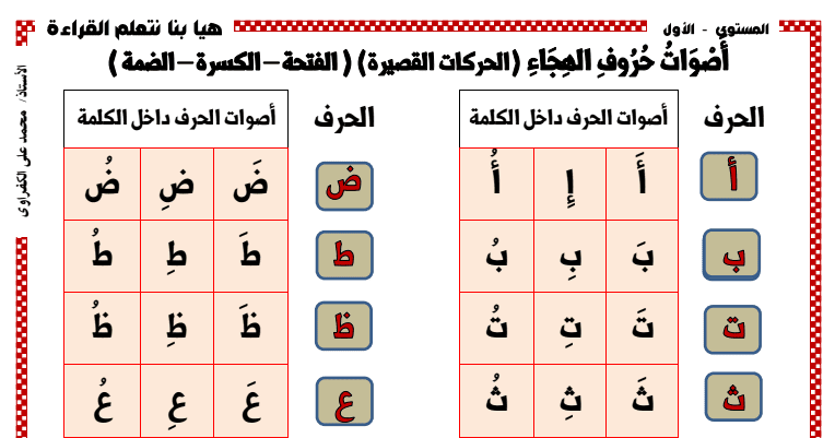 مذكرة تعليم القراءة والكتابة للصف الاول الابتدائى والضعاف
