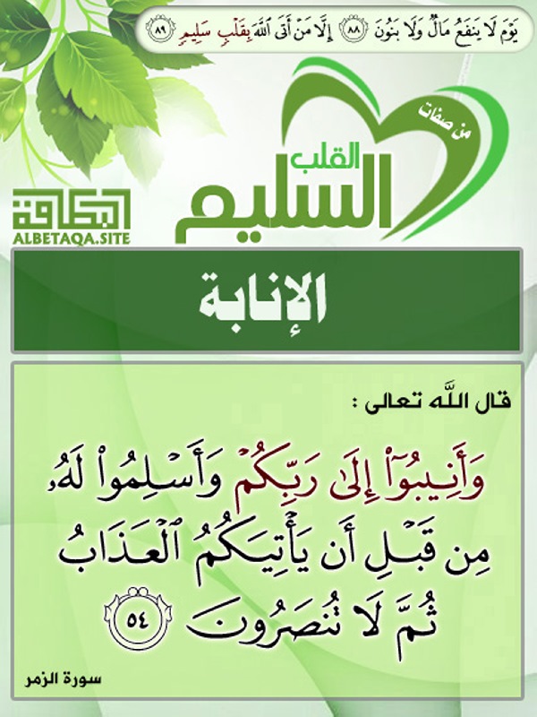 و د ل يل الإ ن اب ة ق و ل ه ت ع ال ى.