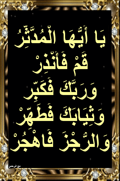 ي ا أ ي ه ا ال م د ث ر ق م ف أ نذ ر و ر ب ك ف ك ب ر و ث ي اب ك ف ط ه ر و الر ج ز ف اه ج D1g