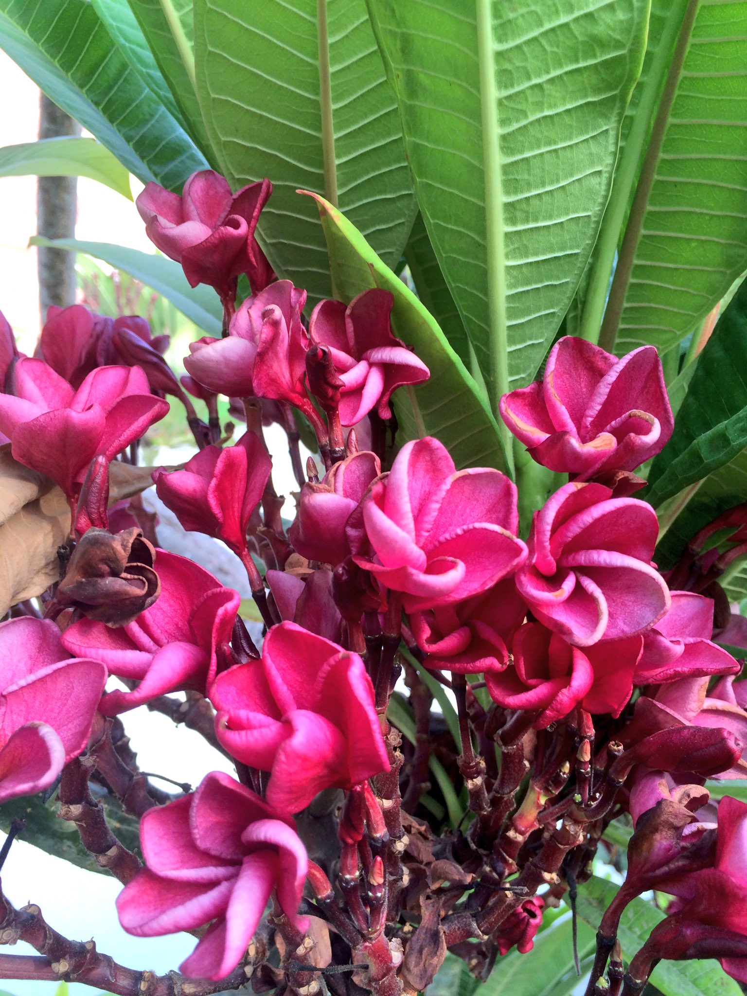 O Xrhsths مغمور في عالم الشهرة Sto Twitter الياسمين الهندي اسمه رنقون بالانجليزي Rengoon اما هذي اسمها بلوميرا اعتقد أو فتنة بالعربي والشجرتين مختلفتين تماما الاولى متسلقه ولها رائحة جميلة جدا والثانية