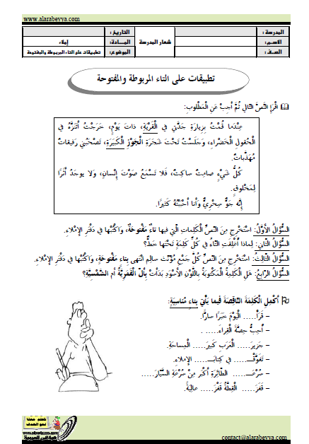 الصف الثاني لغة عربية الفصل الثاني ورقة عمل3 التاء المربوطة والتاء المفتوحة