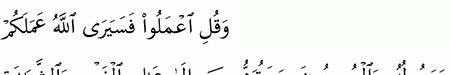 و ق ل اع م ل وا ف س ي ر ى الل ه ع م ل ك م و ر س ول ه و ال م ؤ م ن ون و س ت ر د ون إ ل ى ع ال م ال غ ي ب و الش ه اد ة ف ي ن ب ئ ك م ب م ا ك ن ت م ت ع م ل ون التوبة 105