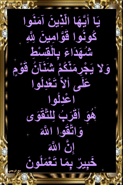 ي ا أ ي ه ا ال ذ ين آم ن وا ك ون وا ق و ام ين ل ل ه ش ه د اء ب ال ق س ط و ل ا ي ج ر م ن ك م ش ن آن ق و م ع ل ى أ ل ا ت ع د ل وا اع د ل وا ه و أ ق ر ب ل لت ق و ى و ات ق وا الل ه إ ن الل ه اجمل واروع الصور الاسلامية والدينية 2020