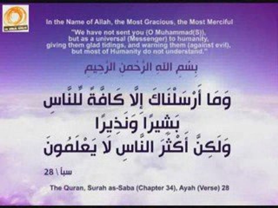 وما أرسلناك إلا كافة للناس بشيرا ونذيرا ولكن أكثر الناس لا يعلمون سورة سبأ آية 28 Youtube